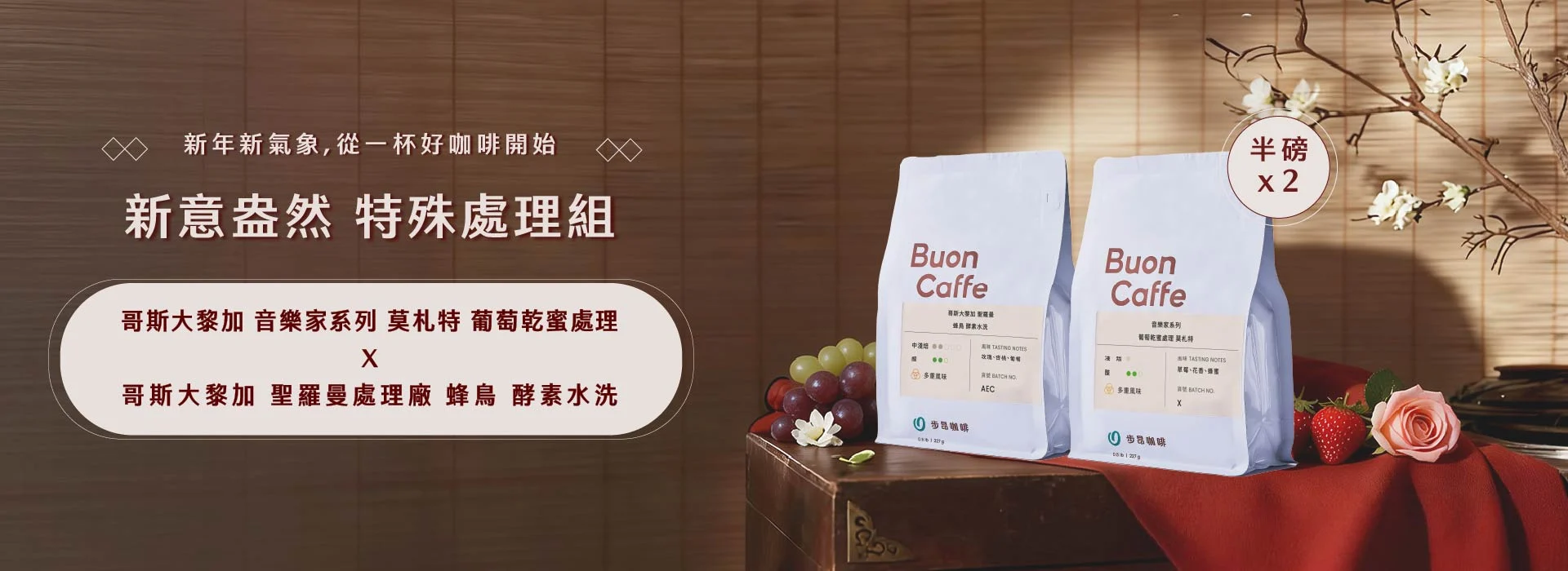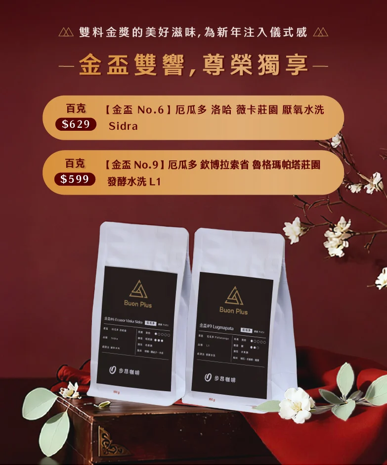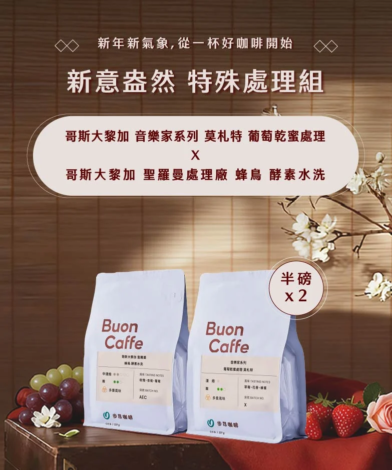 |本月新品| 步昂烘豆團隊,每月杯測打樣超過近百支咖啡豆,每月嚴選10-20支新品,與您分享 售完快速檢視圖示 <限量快搶> 瓜地馬拉 科班雨林 齊格綺合作社 日曬(百克原豆) 百克 99元 $NT 175 特價 快速檢視圖示 新意盎然 特殊處理組(半磅X2) 特惠 729元 $NT 858 特價 快速檢視圖示 馬年新春 1+1強豆組(半磅X2) 特惠 799元 $NT 968 特價 快速檢視圖示 馬年迎春 花果組(半磅X3) 特惠 1059元 $NT 1287 特價 快速檢視圖示 馬到成功 醇厚組(半磅x2) 特惠 649元 $NT 788 特價 快速檢視圖示 花與莓的冬日樂章(半磅x2) 特惠 799元 $NT 878 評分 5.00 滿分 5 快速檢視圖示 哥倫比亞 美麗地 El Meridiano 水洗 SOE 半磅 469元 百克 235元 快速檢視圖示 衣索比亞 西達馬 班莎 翰馬修 橘光舞妓 日曬 慢乾 G1 半磅 499元 評分 4.00 滿分 5 點此看更多「本月新品」 |熱銷品項| 每月限定的超值優惠,馬上選購 特價 快速檢視圖示 <每週優惠>肯亞 抹茶山 小山園 AA TOP 水洗 特惠 429元 $NT 529 評分 5.00 滿分 5 特價 快速檢視圖示 <每週優惠>尼加拉瓜 歐克塔之星 新塞哥維亞 水洗 特惠 349元 $NT 389 評分 4.80 滿分 5 特價 快速檢視圖示 <每週優惠>薩爾瓦多 蜜沐羅 El Mural Pacas 蜜處理 特惠 389元 $NT 429 特價 快速檢視圖示 經典樂章組 水果調(半磅X3) 特惠 1349元 $NT 1397 評分 4.80 滿分 5 特價 快速檢視圖示 經典樂章組 花香調(半磅x3) 特惠 1327元 $NT 1367 特價 快速檢視圖示 <半磅特惠$219> 耶加雪菲 橙香紅韻 水洗 G1 (每單限購1包) 半磅 219元 $NT 329 評分 4.86 滿分 5 快速檢視圖示 巧莓公主 手沖適合烘焙 半磅 439元 百克 220元 一磅 834元 2.2磅 1738元 五磅 3732元 評分 5.00 滿分 5 快速檢視圖示 巧莓公主 加奶適合烘焙 半磅 439元 百克 220元 一磅 834元 2.2磅 1738元 五磅 3732元 評分 5.00 滿分 5 點此看更多「熱銷品項」 C³offee 咖啡誌 – 專業咖啡職人雜誌報導 蝦皮大學 – 如何透過「科技化烘焙」打造高品質咖啡 網友真實評價推薦