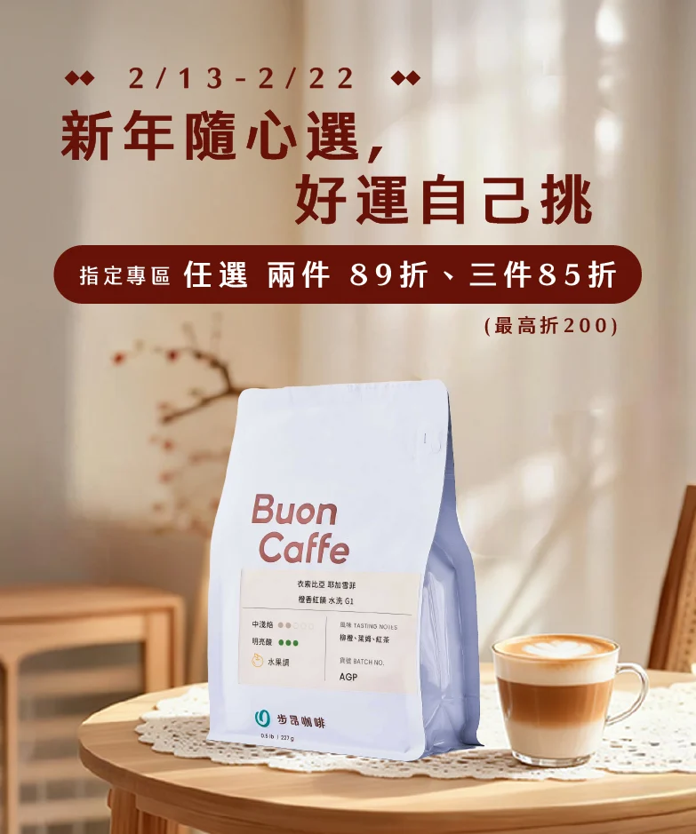 |本月新品| 步昂烘豆團隊,每月杯測打樣超過近百支咖啡豆,每月嚴選10-20支新品,與您分享 特價 快速檢視圖示 步昂新春精選木禮盒| ( 4款風味各5入,每盒共20入,每入15g ) 特惠 1199元 $NT 1599 特價 快速檢視圖示 金盃雙響,尊榮獨享 特惠 629元 $NT 849 特價 快速檢視圖示 馬年新春 1+1強豆組(半磅X2) 特惠 799元 $NT 968 特價 快速檢視圖示 馬年迎春 花果組(半磅X3) 特惠 1059元 $NT 1297 評分 5.00 滿分 5 特價 快速檢視圖示 馬到成功 醇厚組(半磅x2) 特惠 649元 $NT 788 特價 快速檢視圖示 花與莓的冬日樂章(半磅x2) 特惠 799元 $NT 878 評分 5.00 滿分 5 快速檢視圖示 哥倫比亞 美麗地 El Meridiano 水洗 SOE 半磅 469元 百克 235元 快速檢視圖示 衣索比亞 西達馬 班莎 翰馬修 橘光舞妓 日曬 慢乾 G1 半磅 499元 百克 250元 評分 4.00 滿分 5 點此看更多「本月新品」 |熱銷品項| 每月限定的超值優惠,馬上選購 特價 快速檢視圖示 <每週優惠>肯亞 抹茶山 小山園 AA TOP 水洗 特惠 429元 $NT 529 評分 5.00 滿分 5 特價 快速檢視圖示 <每週優惠>步昂咖啡 X 職人烘豆師 吳昶逸—太妃糖協奏曲 特惠 249元 $NT 279 評分 4.85 滿分 5 特價 快速檢視圖示 <每週優惠>【TOH第二名處理廠】衣索比亞 西達馬 阿貝果那 高冷地濃縮乾燥 G1 特惠 439元 $NT 489 評分 5.00 滿分 5 特價 快速檢視圖示 經典樂章組 水果調(半磅X3) 特惠 1349元 $NT 1397 評分 4.80 滿分 5 特價 快速檢視圖示 經典樂章組 花香調(半磅x3) 特惠 1327元 $NT 1367 快速檢視圖示 巧莓公主 手沖適合烘焙 半磅 439元 百克 220元 一磅 834元 2.2磅 1738元 五磅 3732元 評分 5.00 滿分 5 快速檢視圖示 巧莓公主 加奶適合烘焙 半磅 439元 百克 220元 一磅 834元 2.2磅 1738元 五磅 3732元 評分 5.00 滿分 5 快速檢視圖示 橙花女王 手沖烘焙 半磅 439元 百克 220元 一磅 834元 2.2磅 1738元 五磅 3732元 評分 4.00 滿分 5 點此看更多「熱銷品項」 C³offee 咖啡誌 – 專業咖啡職人雜誌報導 蝦皮大學 – 如何透過「科技化烘焙」打造高品質咖啡 網友真實評價推薦