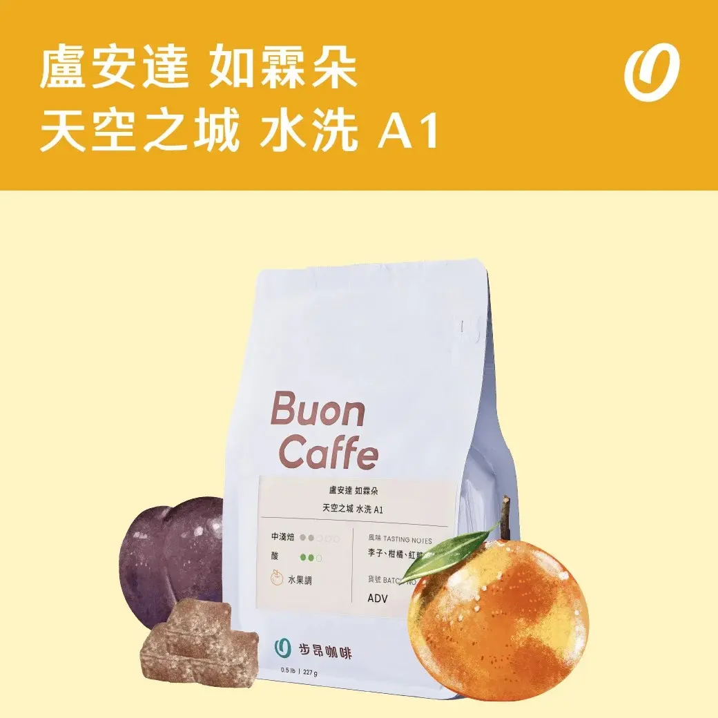 來自盧安達北部如霖朵產區,海拔1,800 公尺 。經 A1 級篩選與水洗,風味乾淨,散發明亮的柑橘果酸,尾韻帶有溫潤紅糖甜感。