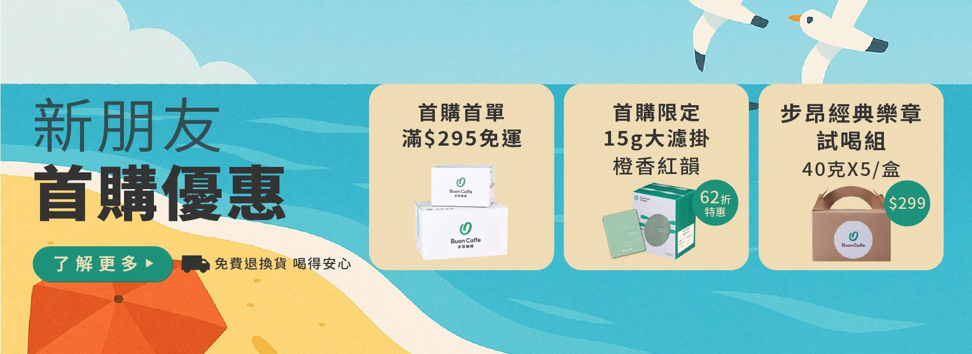 ■ 新朋友首購優惠專區 ■ 快速檢視圖示 [首購限定]15g大濾掛 衣索比亞 耶加雪菲 橙香紅韻 水洗 10入/盒 特惠62折 每單限購1盒 會員首購 298元 $NT 480 評分 5.00 滿分 5 快速檢視圖示 經典樂章超值試喝組合 – 200克 精選組合 (40g*5) 會員首購 299元 $NT 399 評分 5.00 滿分 5